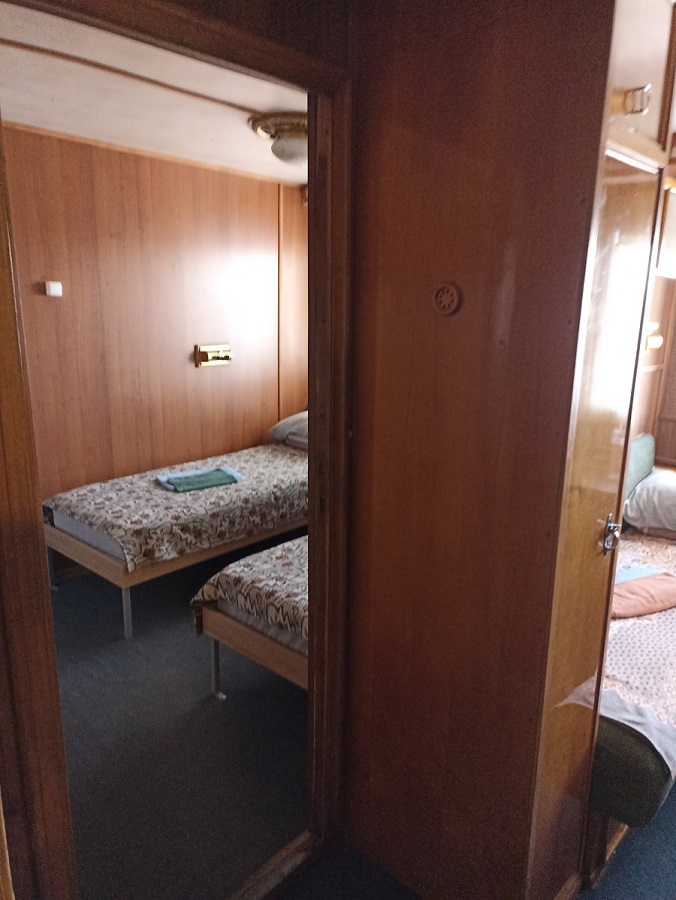 | Средняя палуба | Б2/2 К категории Б2/2 относятся каюты: 217, 219, 221–228, 230.Двухместная двухъярусная каюта с частичными удобствами, расположенная на средней палубе.В каюте: два односпальных места (места расположены одно над другим), розетка 220V, раковина, радио, стол, стул, шкаф для одежды, обзорное окно. | 2-местное размещение | ✔ |