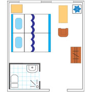 | Главная палуба | А2+ (111, 112) К категории А2+ (111, 112) относятся каюты: 111, 112.Двухместная каюта со всеми удобствами, расположенная на главной палубе. Размещение только для семейных пар, либо один из родителей с ребенком до 10 лет (включительно). Возможно размещение третьего человека на дополнительном спальном месте – односпальная кровать. В каюте: двуспальная и односпальная кровати, ванная комната (раковина, душ, туалет), радио, холодильник, стул, шкаф для одежды, розетка 220 V, обзорные окна. | 3-местное размещение | ✔ |