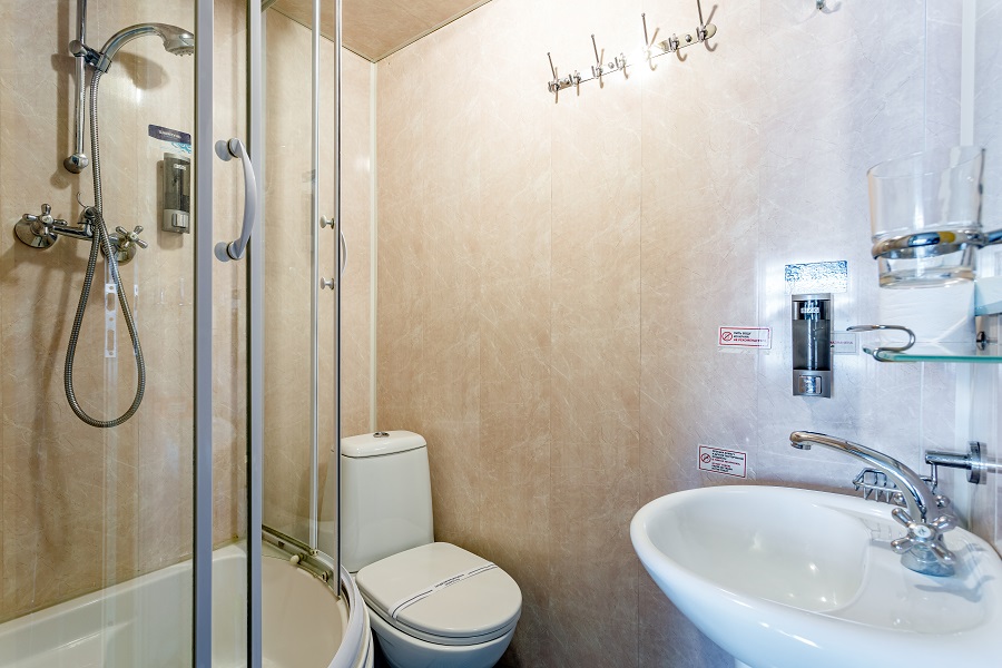 Средняя палуба | А2+(III) К категории А2+(III) относятся каюты: 203–206, 211–214, 303–310. Двухместная каюта увеличенной площади со всеми удобствами, расположенная на главной и средней палубах. Площадь каюты от 8,8 до 12,5 м².В каюте: две односпальные кровати, ванная комната (раковина, душевая кабина, туалет), шкаф, тумба, пуф, стол, настенная полка, кондиционер, телевизор с кабельным и спутниковым вещанием, холодильник, телефон внутренней связи, розетки 220 V, радио, фен, плед для каждого туриста, щетка для одежды, обзорные окна. | 2-местное размещение | ✔ |
