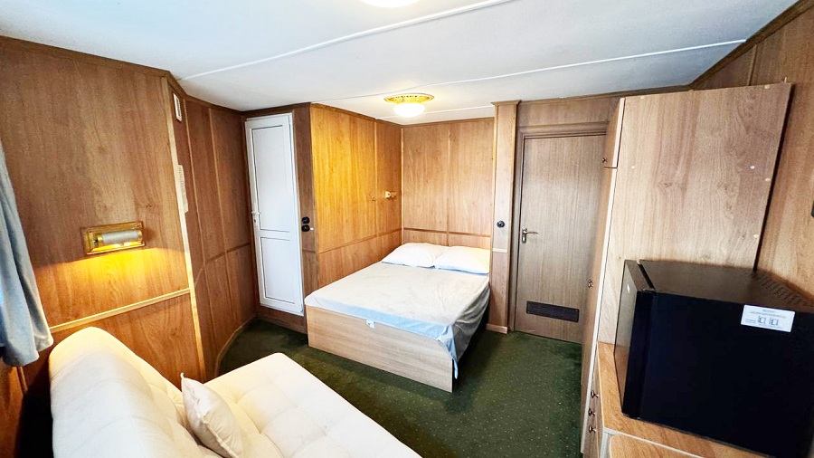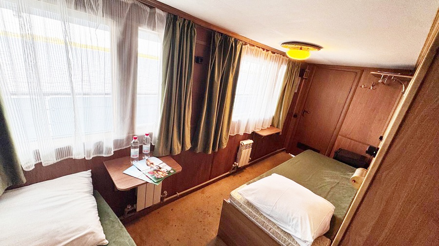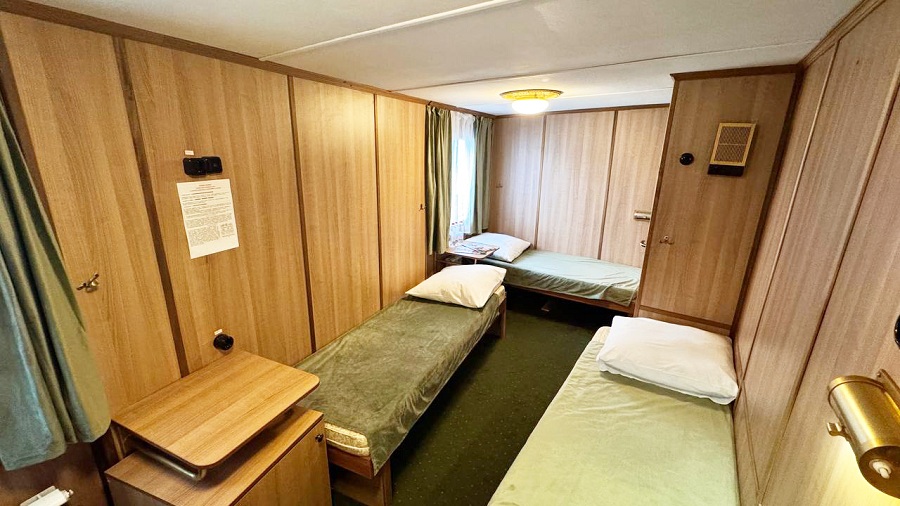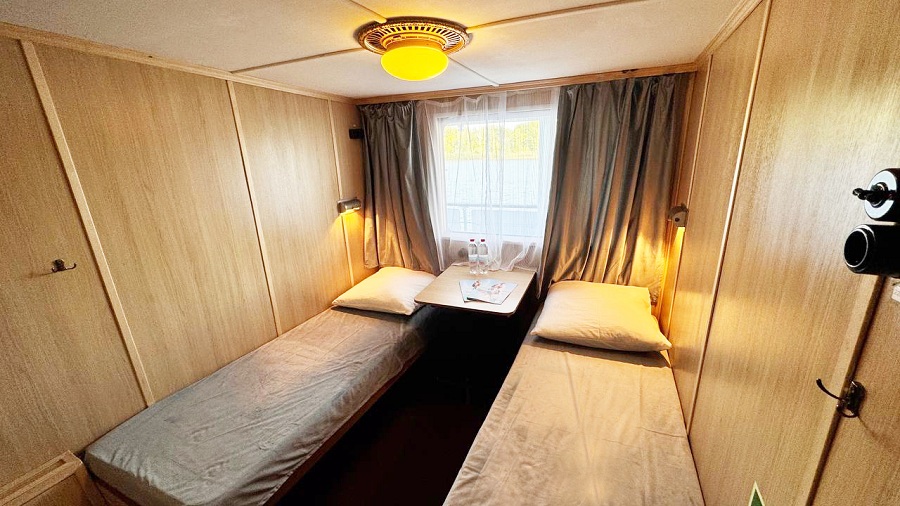 | Главная палуба | Гамма (2+1) К категории Гамма (2+1) относятся каюты: 15, 31, 33.Двухместные каюты со всеми удобствами, расположенные на главной и средней палубе.Площадь каюты от 8 м² до 9 м². В каюте 31, 33 – иллюминаторы. Возможно размещение третьего человека на дополнительном спальном месте верхнего расположения. В каюте: две односпальные кровати и одно спальное место верхнего расположения, ванная комната (раковина, душ, туалет), холодильник, кондиционирование, радио, розетка 220V, обзорное окно. | 3-местное размещение | ✔ |