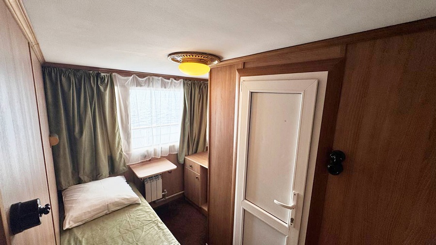 | Средняя палуба | Сигма (1) К категории Сигма (1) относятся каюты: 1, 2, 12, 23.Одноместные каюты со всеми удобствами, расположенные на главной и средней палубах.Площадь каюты от 5,7 м² до 6,5 м². В каюте 34 – иллюминатор. Площадь кают 1, 2, 12 от 5,7 до 5,9 м². Площадь кают 23 от 6 до 6,5 м². В каюте: односпальная кровать, ванная комната (раковина, душ, туалет), холодильник, кондиционирование, радио, розетка 220V, обзорное окно. | 1-местное размещение | нет |
