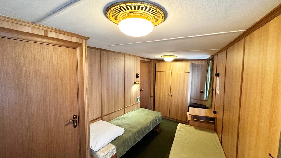| Главная палуба | Гамма (2) К категории Гамма (2) относятся каюты: 22, 32.Двухместные каюты со всеми удобствам, расположенные на главной палубе.Площадь каюты от 8,5 м² до 9 м². В каюте 32 – иллюминаторы. В каюте: две односпальные кровати, ванная комната (раковина, душ, туалет), холодильник, кондиционирование, радио, розетка 220V, обзорное окно. | 2-местное размещение | нет |