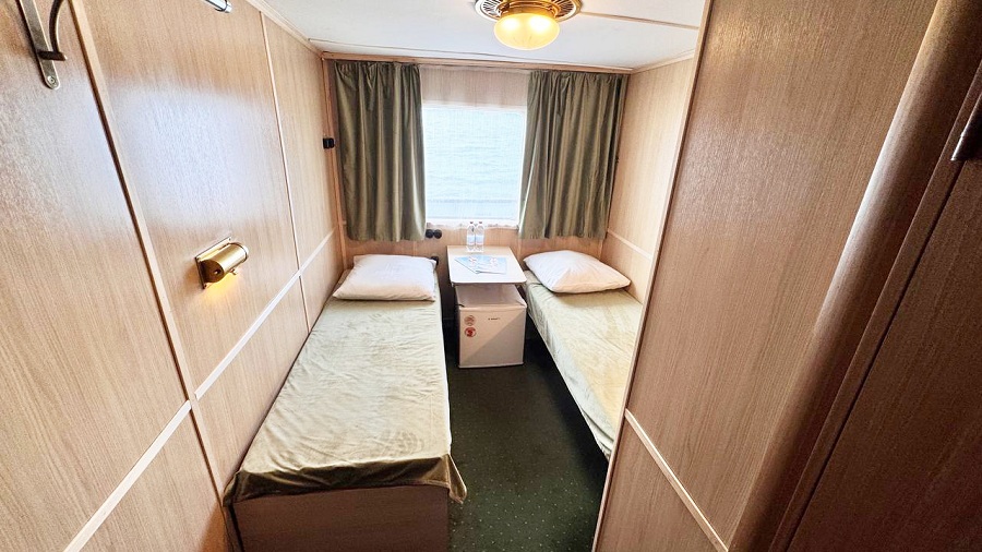 | Средняя палуба | Омега (2) К категории Омега (2) относятся каюты: 14, 16, 38.Двухместные каюты со всеми удобствами, расположенные на главной и средней палубе.Площадь каюты от 7,1 до 7,6 м².В каюте: две односпальные кровати, ванная комната (раковина, душ, туалет), холодильник, кондиционирование, радио, розетка 220V, обзорное окно. | 2-местное размещение | нет |