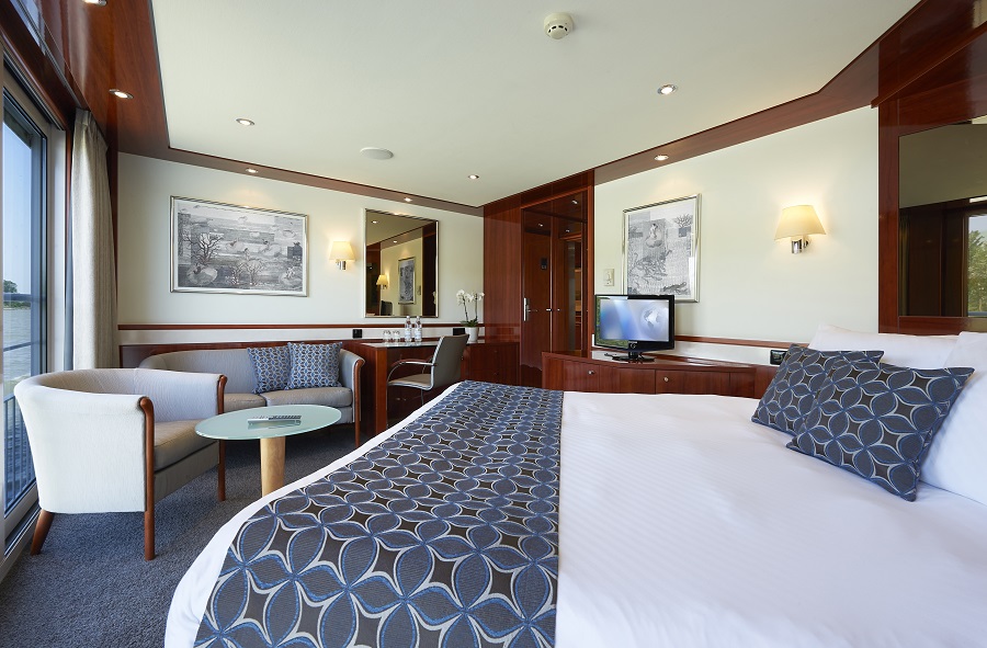 | Upper deck (верхняя палуба) | SUITE К категории SUITE относятся каюты: 309 и 311.Двухместная каюта, расположенная на верхней палубе.Площадь каюты ≈ 21 м².В каюте: двуспальная кровать, ванная комната (раковина, душ, туалет), комплект полотенец, фен, диван, кресло, стол, шкаф для одежды, холодильник, спутниковое телевидение, телефон внутренней связи, радио, сейф, кондиционер, стеклянная балконная дверь, французский балкон. | 2-местное размещение | нет |