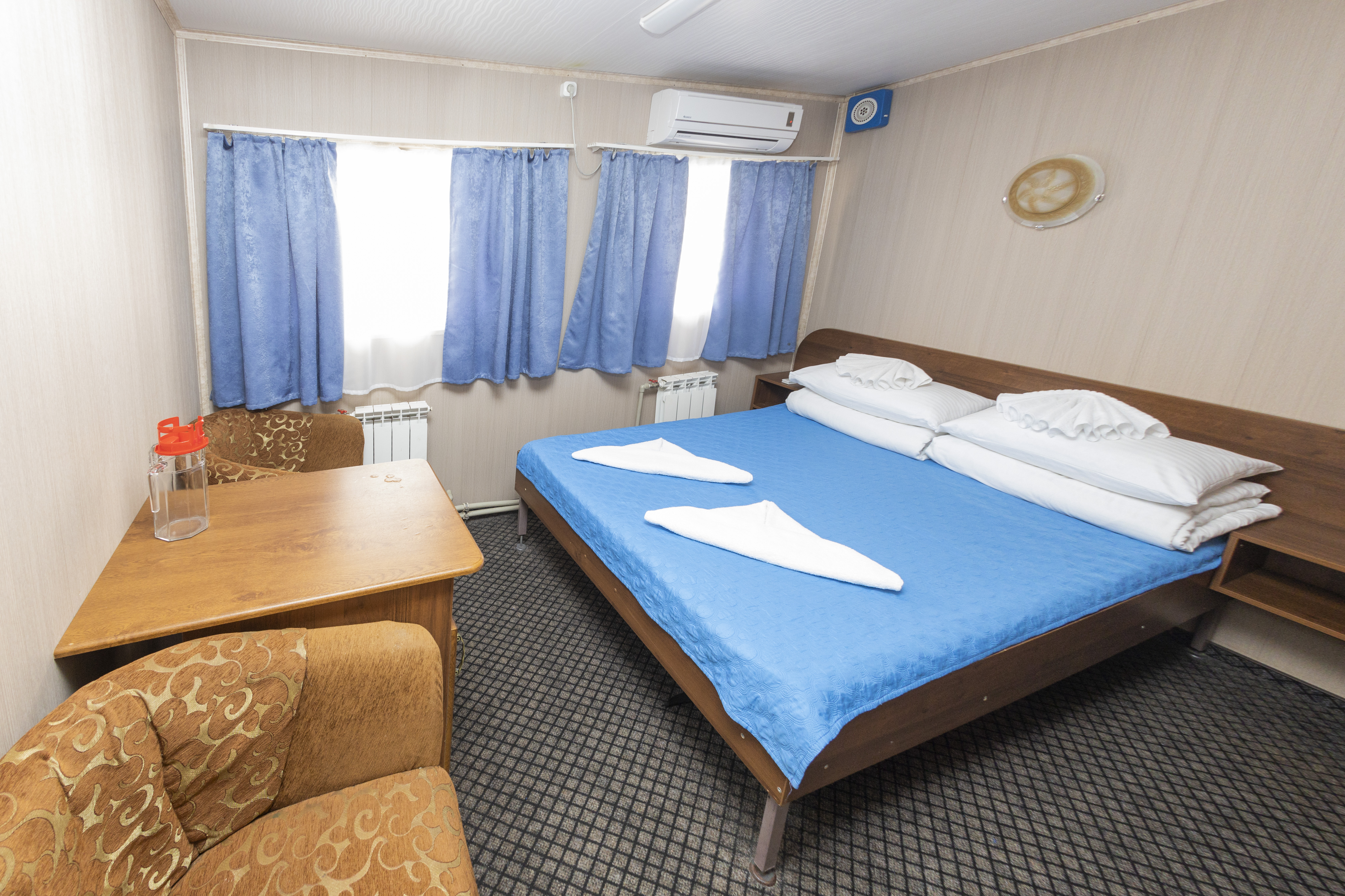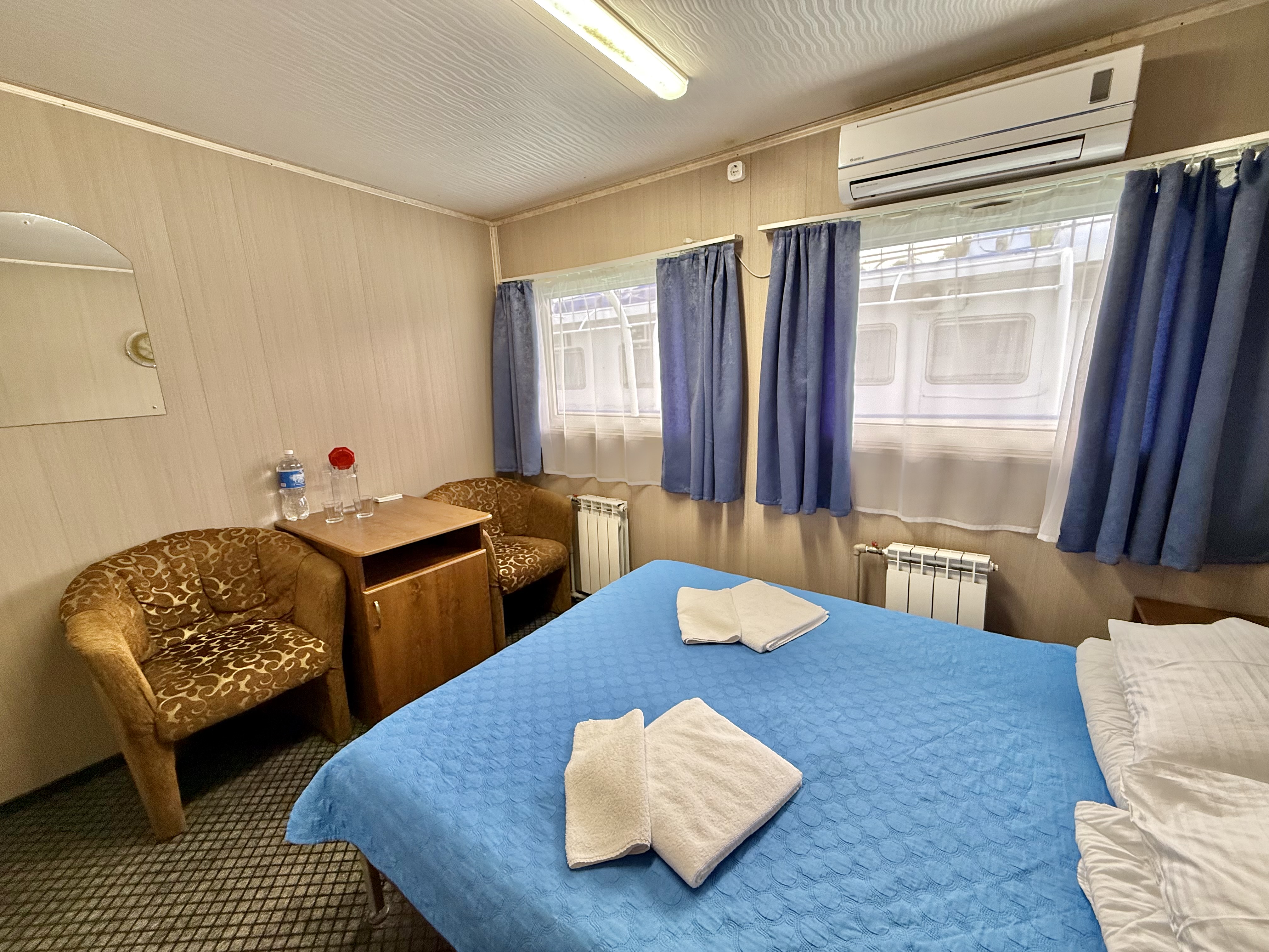 | Главная палуба | 5 3-х местная каюта на главной палубе (совмещенный санузел с душем, абсорбционный мини-холодильник, кондиционер) | 3-местное размещение | нет |