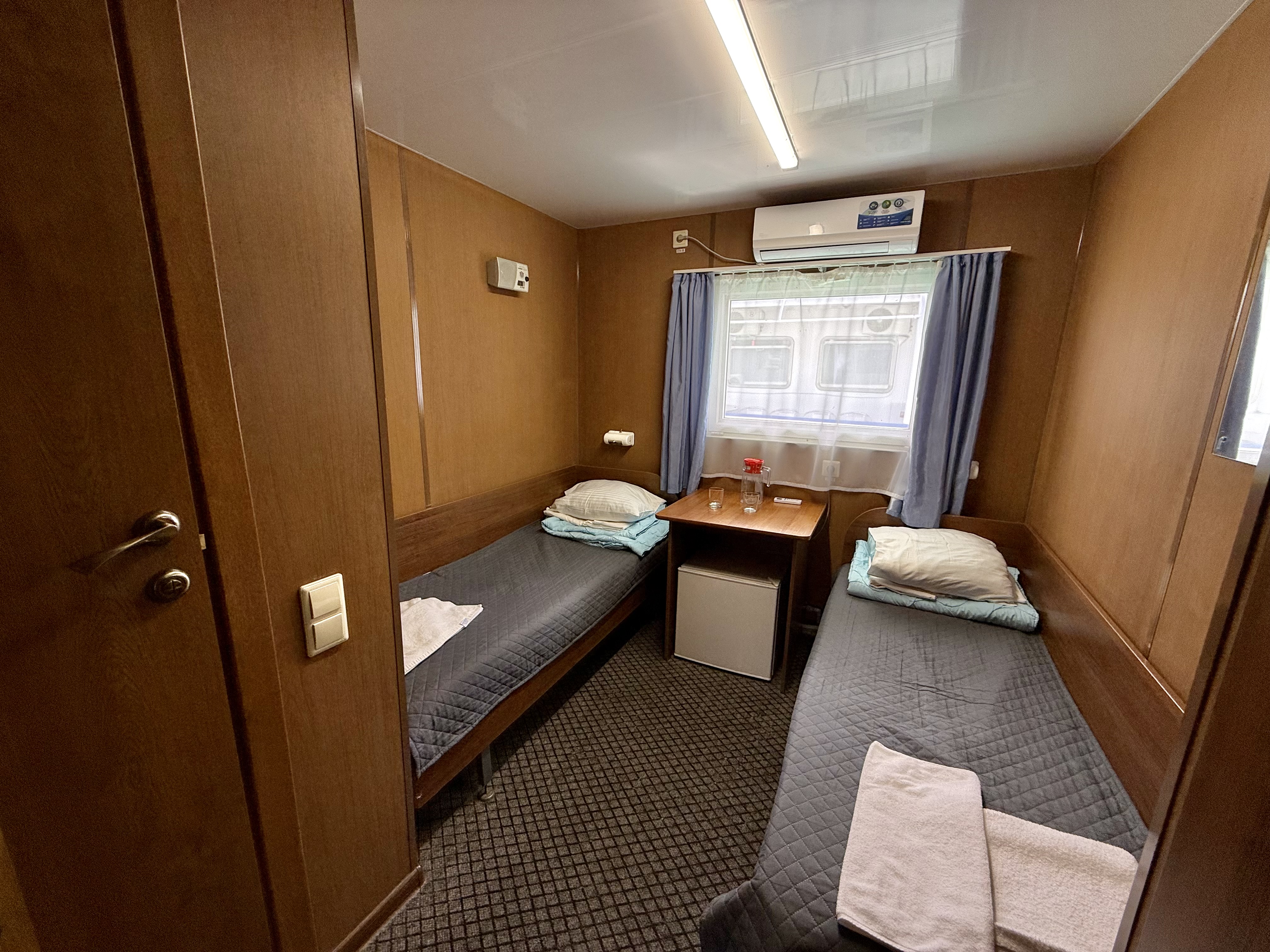 | Нижняя палуба | 6 3-х местная каюта на нижней палубе (совмещенный санузел с душем, абсорбционный мини-холодильник) | 3-местное размещение | нет |